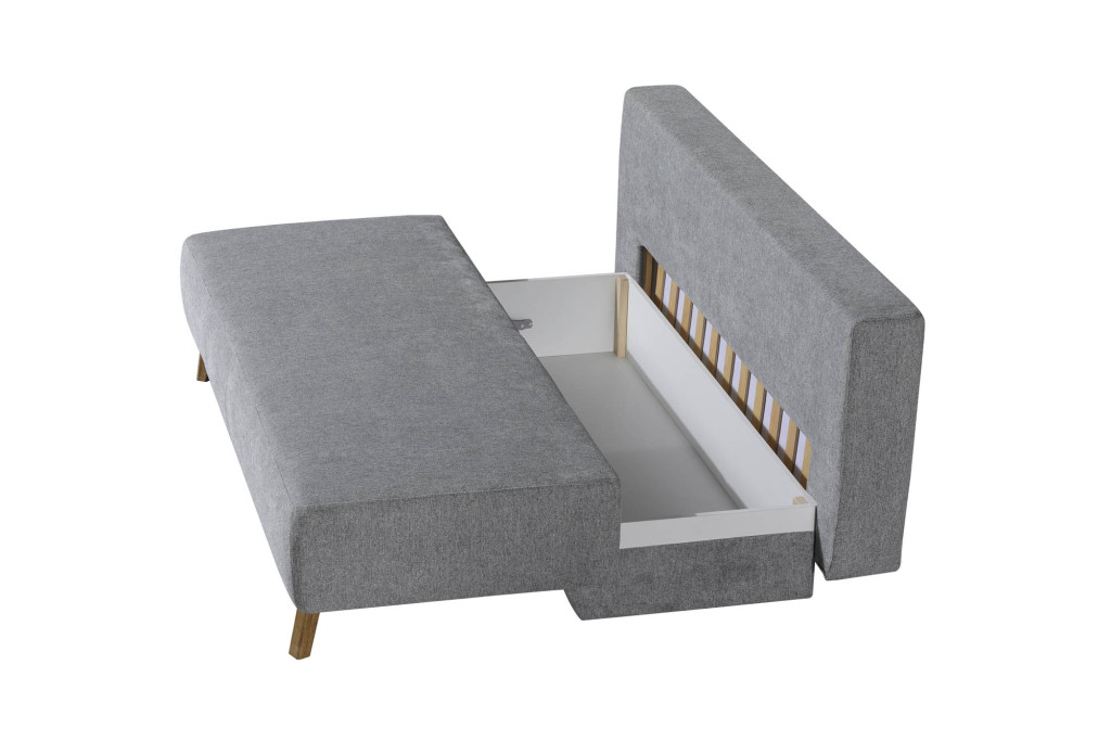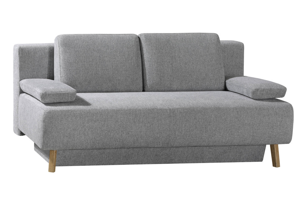 Bezug Stoff 2-7181, Farbe grau, mit abnehmbarem Bezug, Sitz Federkern mit Polyschaum und Wattevlies auf Lattenrost, Rücken Federkern mit Polyschaum und Wattevlies auf Lattenrost , Rückenkissen und lose Armteilkissen - Formschaum, Sitzhöhe 46 cm, Bettkasten, BHT ca. 203/90/100 cm, Liegefläche 150x200 cm