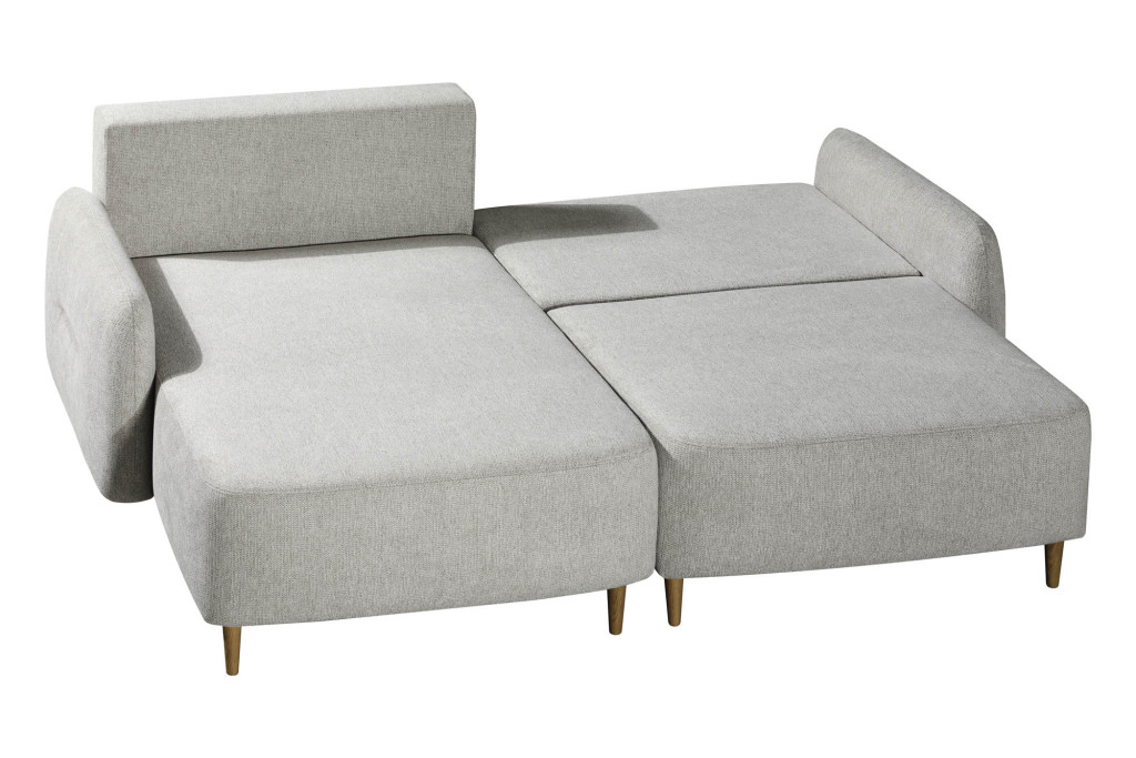 Bezug Stoff 2-6988, Farbe cappuccino, mit Schlaffunktion, Sitz Polyschaum und Wattevlies auf Wellenfedern, Rücken Polyschaum und Wattevlies, Armlehnen 16 cm fest, Sitzhöhe 45 cm, Bettkasten, Ottomane links-2er Sofa mit Schlaffunktion rechts, Stellmaß 154 x 232 cm cm, Liegefläche 140x200 cm