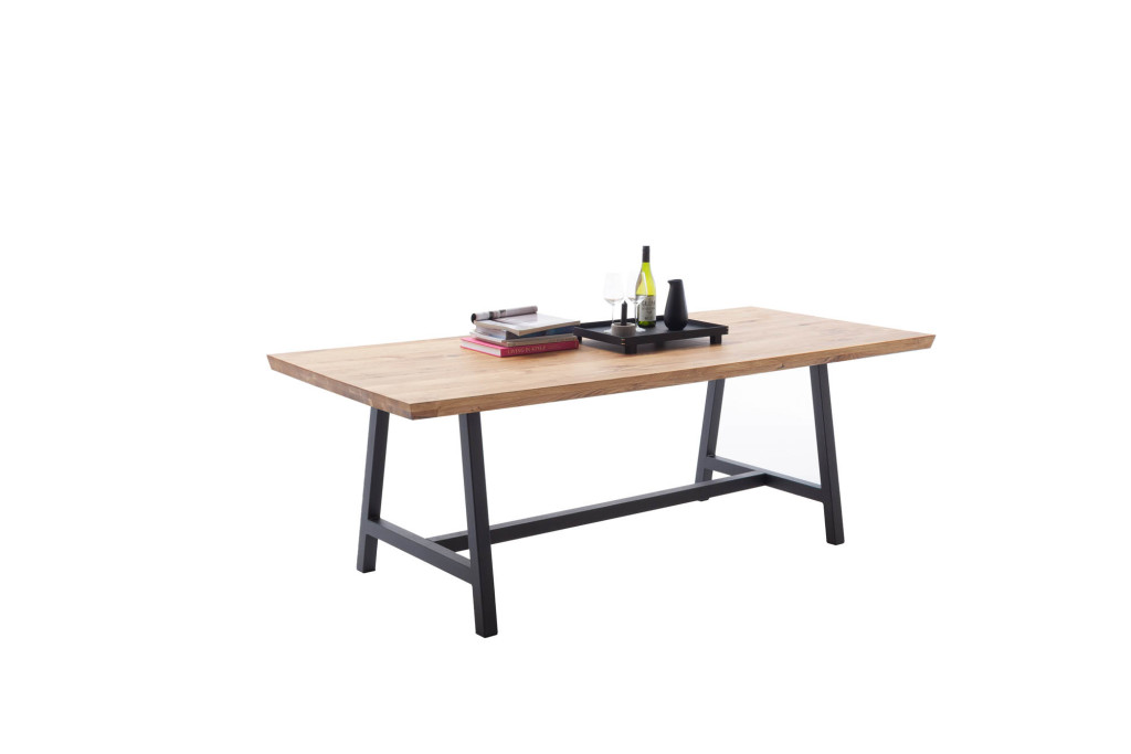 Platte Asteiche/Balkeneiche 50 mm aufgedoppelt, durchgehende Lamelle, Wildeiche geölt, Profil A grade Kante, LBH ca. 220/100/5 cm