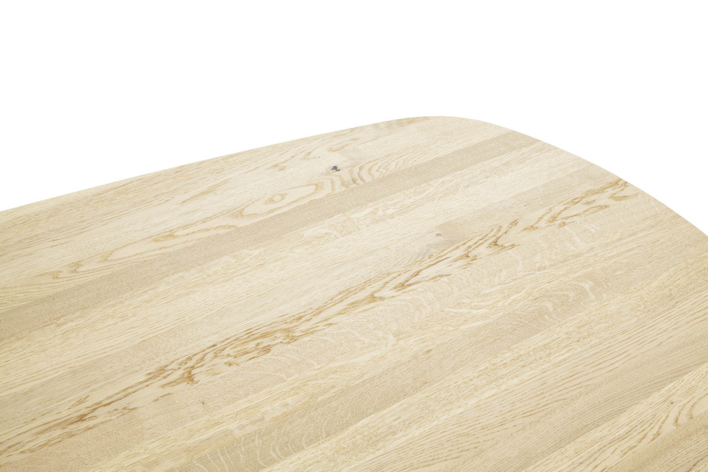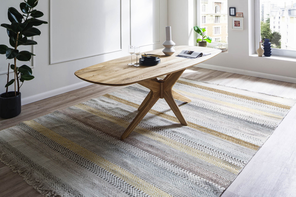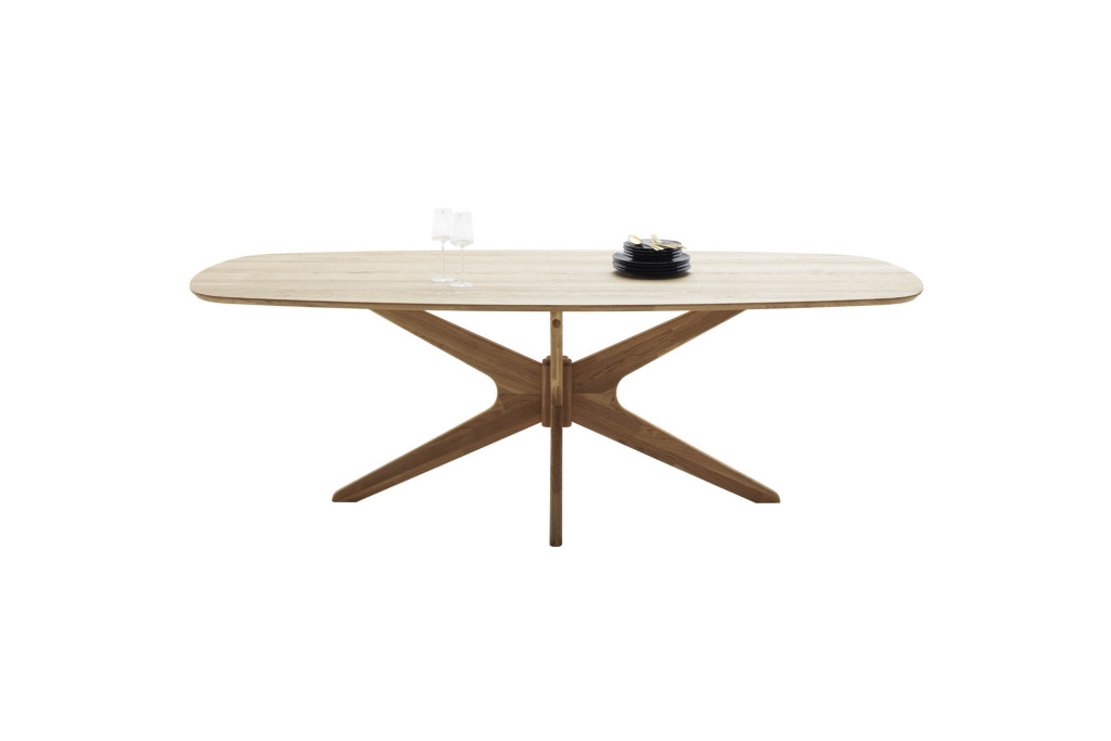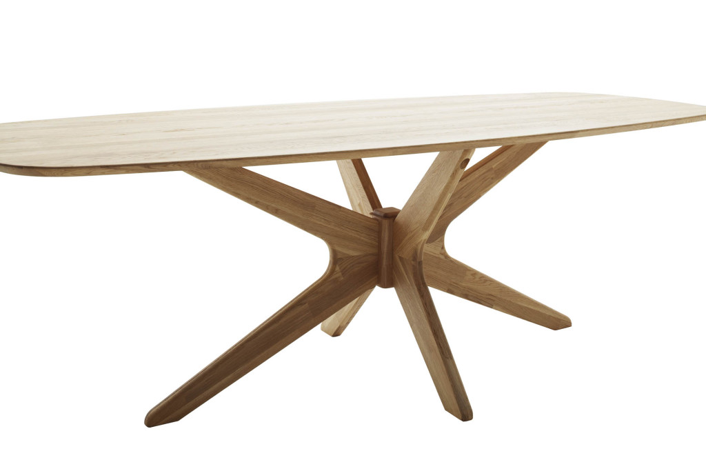 Wildeiche massiv, geölt, Platte 27 mm stark, oval, mit schweizer Kante, Spidergestell, versch. Größen
