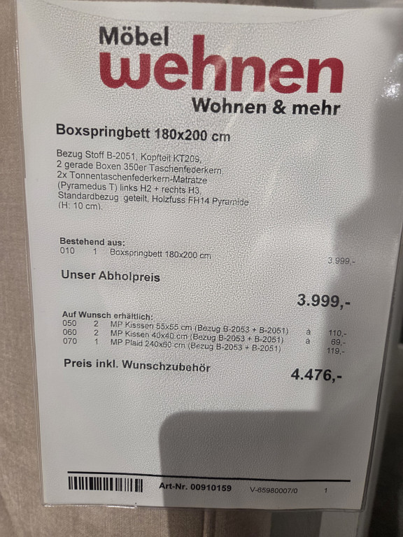 2x Tonnentaschenfederkern-Matratze (Pyramedus T) links H2 + rechts H3