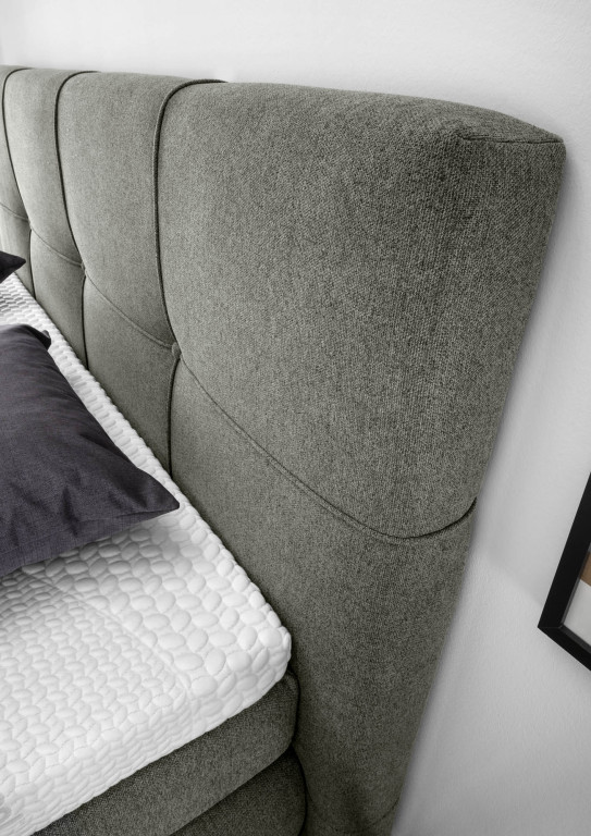Stoff 7078 grau, Füße Amore schwarz metall, Liegefläche 180x200cm, Box Premium mit TFK u. Halbrundschaum, 7-Zonen Taschenfederkernmatratze H2 (ca.390 Federn bei Größe 100/200 cm), Partnerbezug mit Spiegel, Karogestepptes hochwertiges Kopfteil, inklusive Topper Twin 10 cm, 4 cm Gel- u. 4 cm LLQ-Schaum