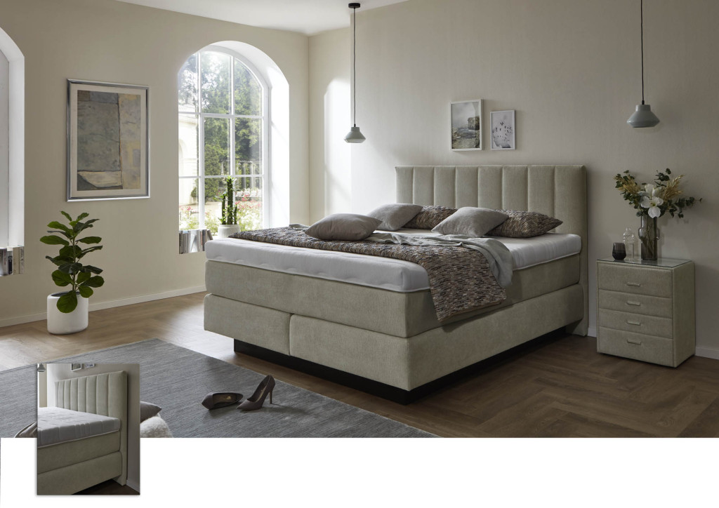 Dieses vielseitige Boxspringbett bietet Ihnen unzählige Möglichkeiten, Ihren Schlafbereich ganz individuell zu gestalten. Wählen Sie aus verschiedenen Kopfteilen, die Ihrem Stil entsprechen, und kombinieren Sie diese mit optimal abgestimmten Liegeflächen. Eine Auswahl an komfortablen Toppern sorgt für das perfekte Liegegefühl, während unterschiedliche Fußausführungen dem Bett eine persönliche Note verleihen. Genießen Sie erholsamen Schlaf und ein Design, das sich ganz nach Ihren Vorstellungen richtet.