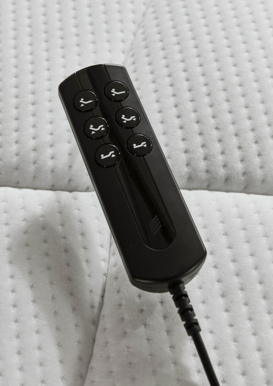 Stoff Puente (PG5), Farbe beige, Füße Schwebeoptik, 10 cm (K08-10), Kopfteil 25028 B, Rücken unecht, Unterbau BK 35, Matratze links 1000-Federn Taschenfederkern-Matratze MA 420 H2, Matratze rechts 1000-Federn Taschenfederkern-Matratze MA 420 H3, Bezug Drell, geteilt, 2x Lattenrost LR28 QM mit motorischer Queröffnung. Liegefläche 180 x 200 cm, Stellmaß BHT 191/125/215 cm, Liegehöhe 62 cm