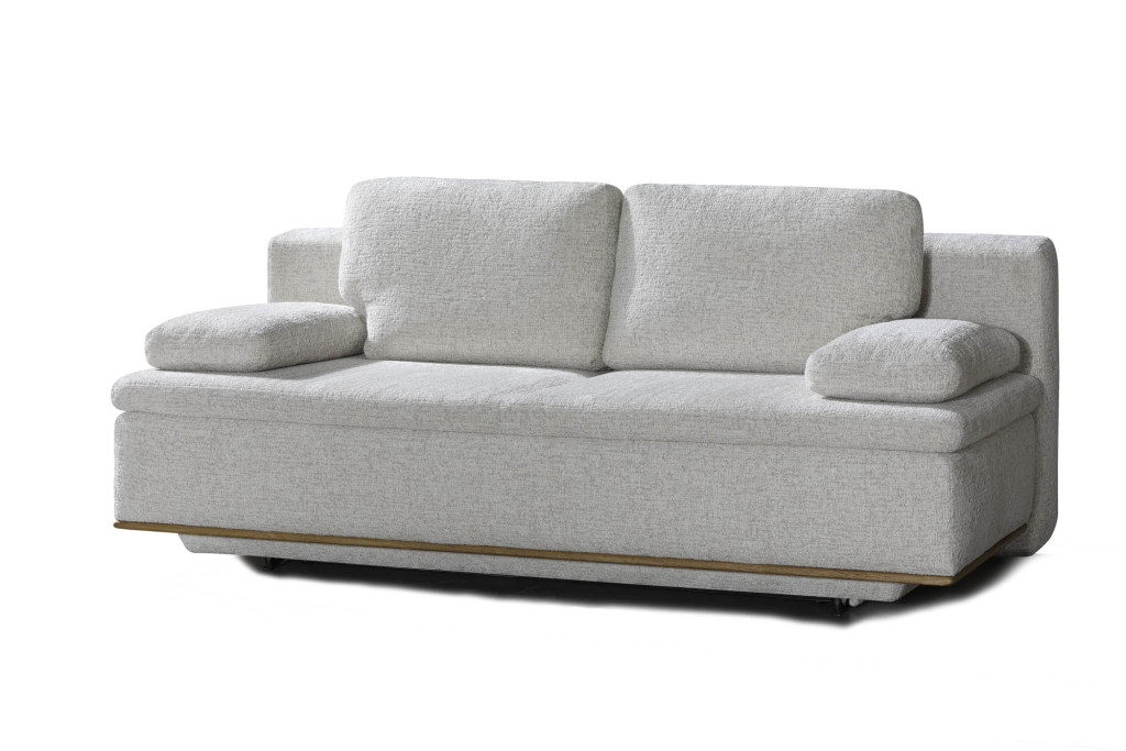 Erleben Sie höchsten Komfort und stilvolles Design mit diesem eleganten Schlafsofa in hellcremer Stoffausführung. Der hochwertige Federkern in Sitz und Rücken sorgt für angenehmen Sitz- und Liegekomfort, während die praktische Rückenautomatik das Verwandeln in eine großzügige Liegefläche erleichtert. Die stabilen Rollenfüße ermöglichen ein müheloses Verschieben, und der integrierte Bettkasten bietet zusätzlichen Stauraum für Decken und Kissen. Dieses Schlafsofa vereint Funktionalität, Qualität und zeitlose Eleganz – die perfekte Wahl für Ihr modernes Wohnambiente.