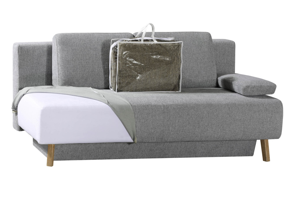 Bezug Stoff 2-7181, Farbe grau, mit abnehmbarem Bezug, Sitz Federkern mit Polyschaum und Wattevlies auf Lattenrost, Rücken Federkern mit Polyschaum und Wattevlies auf Lattenrost , Rückenkissen und lose Armteilkissen - Formschaum, Sitzhöhe 46 cm, Bettkasten, BHT ca. 203/90/100 cm, Liegefläche 150x200 cm