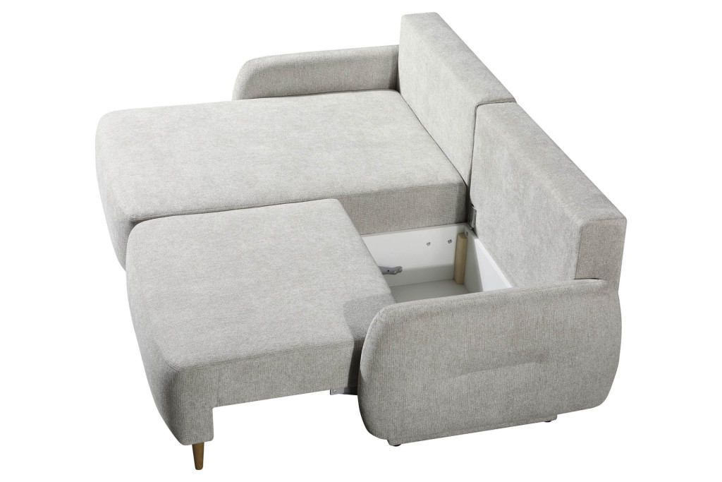 Bezug Stoff 2-6988, Farbe cappuccino, mit Schlaffunktion, Sitz Polyschaum und Wattevlies auf Wellenfedern, Rücken Polyschaum und Wattevlies, Armlehnen 16 cm fest, Sitzhöhe 45 cm, Bettkasten, Ottomane links-2er Sofa mit Schlaffunktion rechts, Stellmaß 154 x 232 cm cm, Liegefläche 140x200 cm