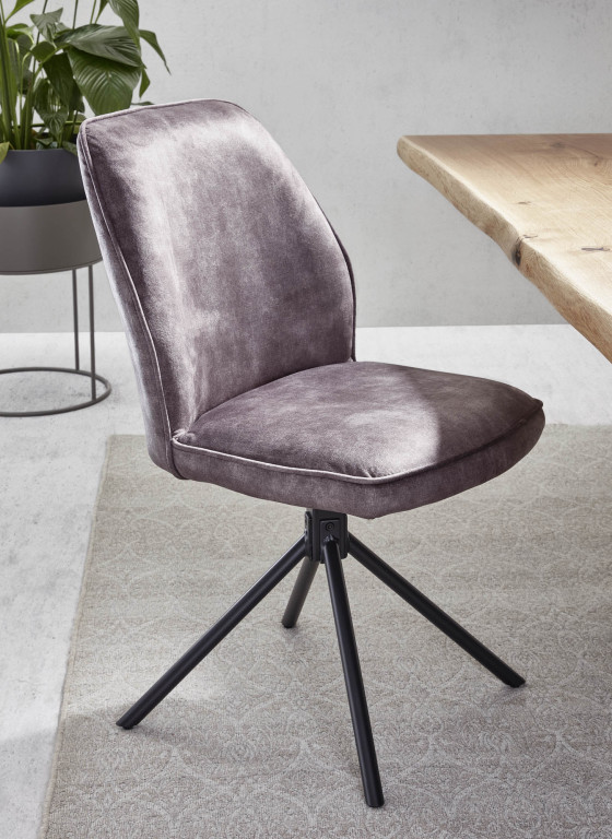 anthrazit, Vintage-Veloursoptik mit Keder, Gestell rund schwarz matt lackiert, Belastbarkeit bis maximal 120 kg, Sitz BHT ca. 50/50/44 cm, BHT ca. 52/89/64 cm