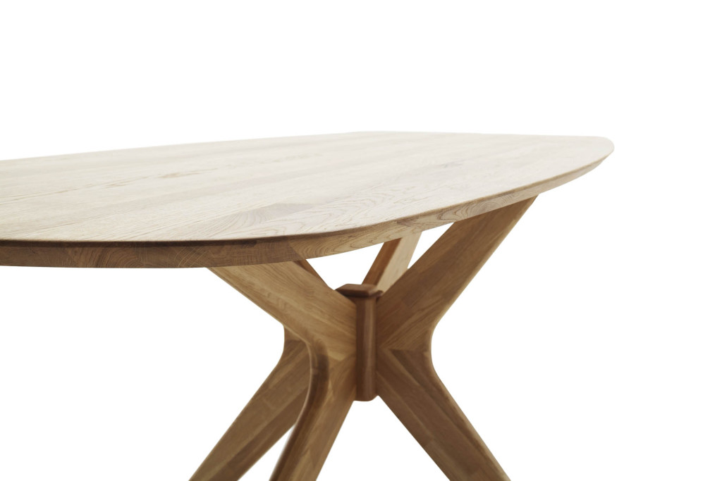 Wildeiche massiv, geölt, Platte 27 mm stark, oval, mit schweizer Kante, Spidergestell, versch. Größen
